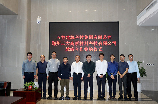 9月25日,鄭州工大高新材料科技有限公司(以下簡(jiǎn)稱(chēng):工大科技)與五方建筑科技集團(tuán)有限公司(以下簡(jiǎn)稱(chēng):五方建筑)戰(zhàn)略合作簽約儀式在鄭州大學(xué)建筑科技研究中心舉行。工大科技董事長(zhǎng)趙振波和五方建筑董事長(zhǎng)崔國(guó)游代表雙方簽約。