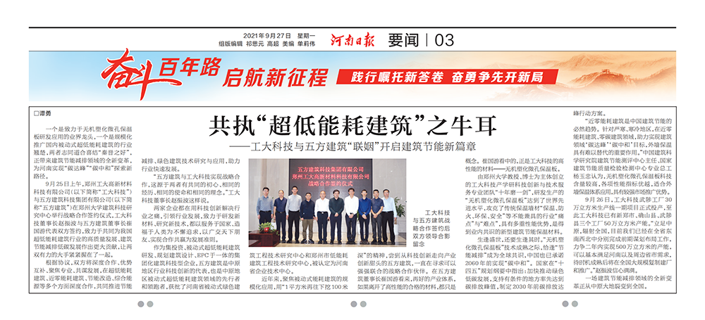 一個是致力于無機塑化微孔保溫板研發應用的業界龍頭,一個是規模化推廣國內被動式超低能耗建筑的行業翹楚,兩者志同道合喜結“秦晉之好”,正帶來建筑節能減排領域的全新變革,為河南實現“碳達峰”“碳中和”探索新路徑。